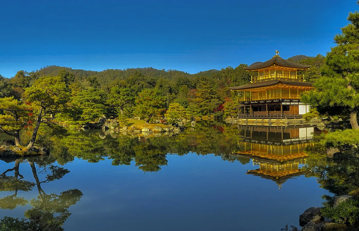 De røde torii-portene ved Fushimi Inari strekker seg oppover åssiden, mens Den gylne paviljong speiler seg i det stille vannet. I Arashiyama vaier bambusskogen høyt over deg, og lyset filtreres mellom de slanke stammene på en måte som inviterer til stillhet. I bydelen Gion kan du være heldig å skimte en geisha på vei til kveldens oppdrag.